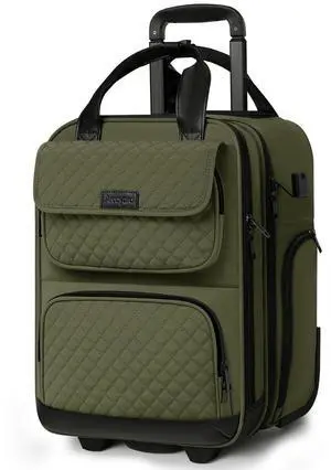 Arcoyard Underseat Carry On Luggage with Wheels, Airline Approved Personal Item Bag, 16-Inch Multi-functional Rolling Laptop Bag, Lightweight Overnight Suitcase for Women, Bussiness, Travel, Green