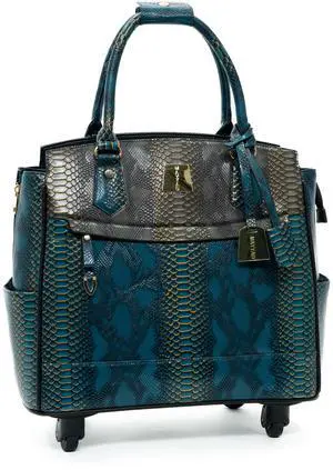 MAYYAD Womens Teal and Shadow Gray Snakeskin Rolling Laptop Bag Stylish Business Trolley Briefcase with Wheels PU Leather Travel Tote Fits Up to 17.3 Laptops Wheeled Laptop Case for Work