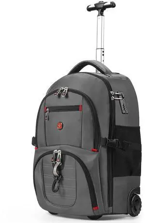 UNIKER Rolling Laptop Bag for 15.6 Inch Laptop,Roller Bag,Backpack with Wheels,20 Inch Wheeled Computer Bag (T5- Black/Red)