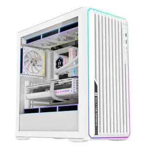 Apevia Aurora-WH Aurora Mid Tower Gaming PC Case w/ 6X 120mm PWM ARGB Fans, 366 RGB Light Modes, 1x Glass & Mesh Front Panel, 1x Door Swivel Style Magnetic Glass Side Panel, 2X USB3.0, White