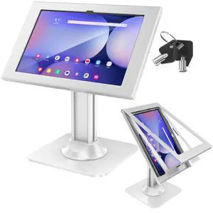 AboveTEK Anti-Theft Tablet Kiosk Stand Heavy-Duty 10.8 lbs Aluminum Security Mount, 360 Swivel & Lock, Fits Samsung Galaxy Tab S11/S10/S9/S8 Ultra (14.6") for Retail & Business (White)