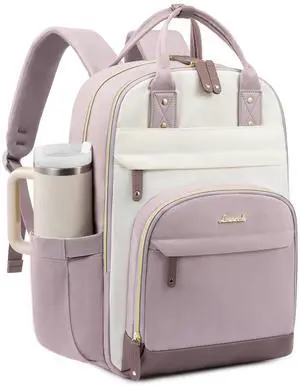 LOVEVOOK Laptop Backpack Women with Giant Tumbler Holder Pocket,15.6 inch School College Book Bag Nurse Teacher Backpack,Work Travel Backpack Laptop Computer Bag,Light purple-Off-white-Pinkish purple
