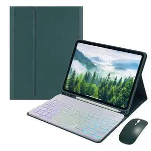 Disonbeir Rainbow Backlit Keyboard Case for iPad Pro 11 inch (4th/3rd/2nd/1st Gen) with Mouse and 7 Colors RGB Colorful Backlight Detachable Bluetooth Keyboard Cover,Dark Green+White