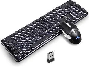 TK950 Wireless Typewriter Keyboard and Mouse Combo,104 Keys Retro Typewriter Mechanical Keyboard with White Backlit, Anti-Ghosting, Blue Switch, Bluetooth/2.4G/Wired Cute Gaming Keyboards-White