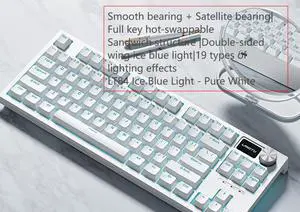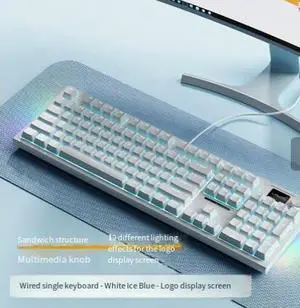 Three-mode hot-swappable wireless Bluetooth mechanical keyboard, customized with wired black axis gaming keyboard for esports. White and Red Axes [Wired/Ice Blue Light] LOGO Screen Axis Base Hot Swap