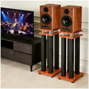 17in Speaker Stands Pair, Floor Speaker Stands for Surround,Universal Speaker Stand,Holds 110lbs,Large Heavy Duty Satellite/Bookshelf Stands for Home Theater/Studio/Living Room (Brown, 17in)