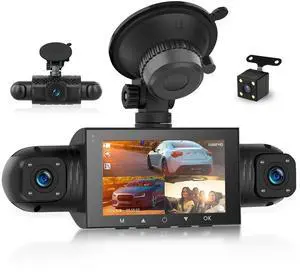 4 Channel Dash Cam 360View 1080P Front and Rear Inside, Left, Right, Dash Camera for Cars, IR Night Vision 3 Inch IPS Monitor, 24H Parking Mode, Loop Recording