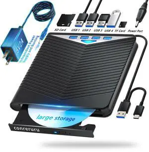 conreruru Support for Blu-ray Drive, Support for Blu-ray DVD/CD Player/Read/Write, USB 3.0 &/Type-C, Support for Blu-ray Player, Windows 7-11 & Mac, PC-Compatible, M-DISC(Black)