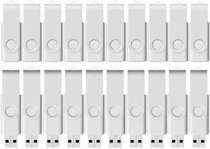 Flash Drive Bulk 8GB USB 20 Pack FEWINA USB2.0 USB Drives Pack Thumb Drive Bulk Swivel Memory Stick Zip Drive for Storage and Backup White 20PCS 8GB