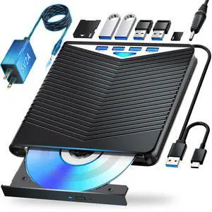 Dainty 7-in-1External Blu ray Drive Read/Write with Bluray Burner USB 3.0 and Type-C Compatible with/Windows7-11 Mac OS Support for BD/DVD/CD Drive, Windows 7-11 & Mac, PC-Compatible, M-DISC(Black)