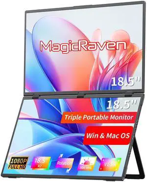 MAGICRAVEN Laptop Screen Extender, 18.5" Dual Monitors Stacked Folding Triple Monitor (Wins/Mac) 1080P 100hz USB C Travel Extended Computer Display Triple Portable Monitor for Laptop PC Windows Mac