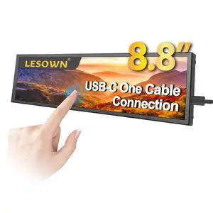 LESOWN 8.8 inch Small Mini Touchscreen Monitor 480x1920 IPS USB Type C Long Stretched Bar 600cd/m2 High Brightness Adjustable Strip Display for Windows Computer PC Sub Screen