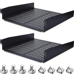 2 Pack Rack Shelf Vented Rack Mount Shelf Universal Heavy Duty Server Rack Shelf for 19 Inch Network Equipment Rack and Cabinet 16 Inch Deep (2U,19 x 16 x 3.5 Inch)