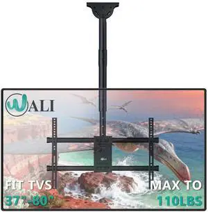 WALI Ceiling TV Mount for Most 37 to 80 inch Flat Screen Display, Hanging TV Mount Bracket with Swivel, Tilt Fits LED, LCD, OLED 4K TVs up to 110lbs, Max Mounting Holes 600x400mm (CM3770), Black