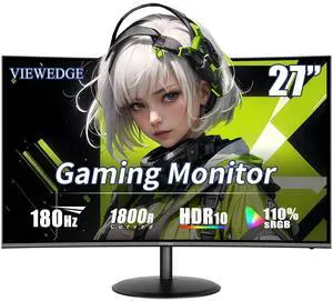 Viewedge 27 inch Curved Gaming Monitor 180Hz 1ms, FHD 1920x1080P Computer Monitor,1800R VA Screen, 120% sRGB with FreeSync, Low Motion Blur, HDMI & DP, Built-in Speakers