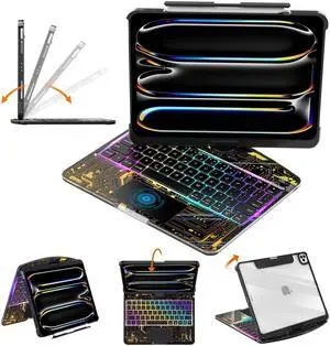 lambasa Clear Keyboard Case for iPad Pro 13 inch (M4/M5 2024/2025) 360 Swivel Multi-Touch Trackpad, Wireless Bluetooth 3-Brightness & 7-Color Backlit, with Pencil Holder, Keyboard Shortcuts Black