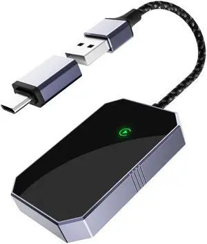 Wireless Carplay Adapter - Android Auto Wireless Adapter US, Conversion from Wired to Wireless with USB to USB C adapter, Plug and Play Bluetooth Car Play Dongle, Compatible with iPhone/Android