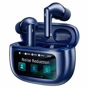 Wireless Touchscreen TWS True Wireless Bluetooth ANC Active Noise Cancelling Earbuds with Smart Touch Screen Case - Blue Tooth Earphones for iPhone Android In Ear Headphones