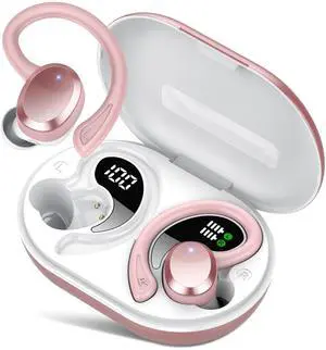 hadbleng Ear Buds Wireless Earbuds Bluetooth Headphones with 128H Playtime LED Digital Display Charging Case, Over-Ear Hook with Mic, Stereo Sound, IPX7 Waterproof Earphones for Workout/Running