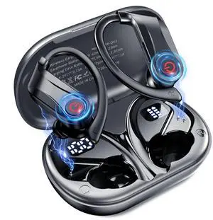 2026 Wireless Earbuds 120hrs Bluetooth 6.1 Headphones Sports Ear Hook with Mic, Noise Canceling Ear Buds with Charging Case, Easy Button Controls Dual LED Display Case Sweat and Water Resistant Black