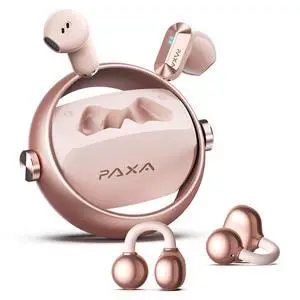 2 in 1 Clip on Open Ear Headphones Wireless Earbuds, 0 Delay Bluetooth 6.0, Ultra-long 140H Play, Auto L-R Recognition Touch Control, Hybrid Noise Reduction for Work Fitness Daily Use,Ctbuds Rose Gold