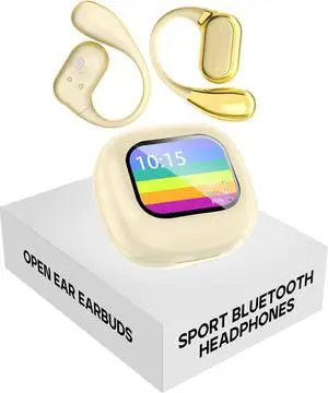 OLLSPAKER Open Ear Earbuds Wireless Bluetooth 5.4 with Touchscreen Charging Case, 32H Playtime, 6g Lightweight Running Headphones, Sport Over The Ear Earbuds for Running Cycling Workouts...Beige