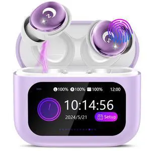 Sleep Earbuds Bluetooth 5.4 in Ear Smart Touch Screen Ear Bud, 48H Playtime Mini Sleep Headphones Small Design for Side Sleepers, 5 EQ Modes, Crystal-Clear Calls, IPX7 Waterproof Earphones Taro Purple