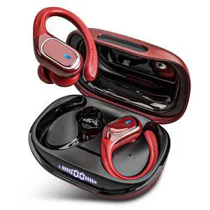 HAOYUYAN Wireless Earbuds Bluetooth 5.3 Headphones with 80H Playback, IPX7 Waterproof Over Ear Buds with LED Power Display for Sports Running WorkoutsCola Red