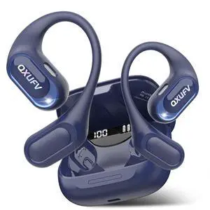 Open Ear Headphones, Bluetooth 5.4 Headphones Sports, Premium Sound with HD Mic Wireless Earbuds, 48H Playtime LED Power Display Ear Buds, IPX7 Lightweight Comfort Earphones for Running, Working, Blue