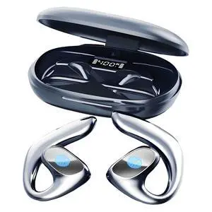 Boytond Ultra Open Ear Earbuds Comfortable Clip-on Bone Conduction Headphones, Wireless Bluetooth Earphones with Waterproof Design, Over Ear Buds for Running and Sports, Mirror Black