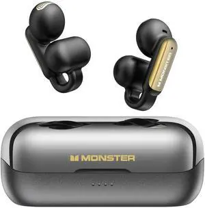 Monster Open AC601 Bluetooth Earbuds, Crystal Clear Call, USB-C Charging, Bluetooth 5.4 Open Earphones with ENC, IPX5 Waterproof Wireless Clip-on Earbuds, 32H Playtime Ear Buds (Black)