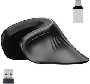 Ergonomic Mouse Wireless, Vertical Ergo Mouse, 2.4G Optical Vertical Cordless Mice 6 Buttons 3 Adjustable 1600 DPI for Mac PC Desktop Laptop Windows Computer Office with USB Receiver &Type-C Adapter