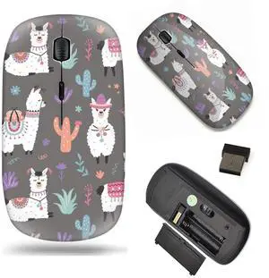 Unique Pattern Optical Mice Mobile Wireless Mouse 2.4G Portable for Notebook, PC, Laptop, Computer - Cartoon Llama Alpaca Pattern