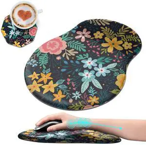 Ergonomic Mouse Pad with Wrist Rest Support + Cup Coasters,Thick Mousepad Relief Carpal Tunnel Pain, Mouse Pad with Non-Slip PU Base, Computer Mouse Pads for Wireless Mouse,Blooming Flowers Floral