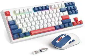 2.4G Wireless Keyboard and Mouse Combo, RGB Backlit Keyboard Mouse Set for Windows, Android & MacOS, Aesthetic Keyboard Mouse with USB & Type-C Dongle for PC Computers, Macbooks & Laptops, Blue