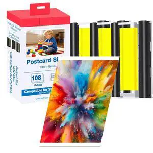 Compatible for Canon Selphy CP1500 Ink and Paper KP-108IN 3 Color Ink Cartridges & 108 Sheets 4x6 Photo Paper Glossy for Canon Selphy CP1300,CP1500,CP1500,CP1000, CP910, CP900 Compact Photo Printers