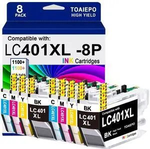 TOAIEPO High Yield LC401XL Ink Cartridges Compatible for Brother LC401 Cartridges Work with Brother MFC-J1010DW MFC-J1012DW MFC-J1170DW MFC-J1800DW, 8 Pack