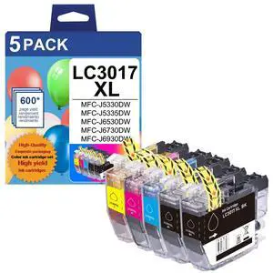 LC3017 XL High Yield Ink Cartridges (2BK/C/M/Y, 5-Pack) - Replacement for Brother LC3017BK LC3017C LC3017M LC3017Y Ink Cartridges Work for MFC-J5330DW MFC-J6530DW MFC-J6730DW MFC-J6930DW Printer