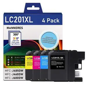 LC201 Ink Cartridges (Black, Cyan, Magenta, Yellow, 4-Pack) Compatible for Brother LC201XL Ink Cartridge Replacement for Brother LC201 LC203 XL Ink Work for MFC-J460DW MFC-J885DW MFC-J880DW Printer