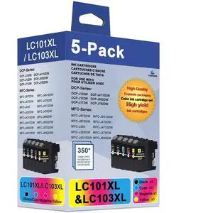 LC101 XL Ink Cartridges High Yield Replacement for Brother Ink Cartridges LC101/LC103 Work for MFC-J870DW MFC-J6920DW MFC-J6520DW MFC-J450DW Printer (2Black 1Cyan 1Magenta 1Yellow, 5-Pack)