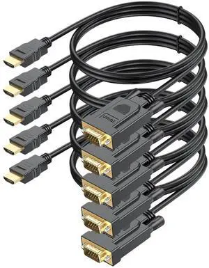 FEMORO HDMI to VGA Adapter Converter 5-Pack (Male to Female) for Computer, Desktop, Laptop, PC, Monitor, Projector, HDTV, Chromebook, Raspberry Pi, Roku, Xbox and More - Black