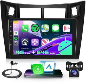 Rimoody 4G+64G Android Car Stereo Radio for Toyota Yaris 2006-2011 with Wireless Carplay Android Auto, 9'' Touchscreen Head Unit GPS Navigation Bluetooth5.0 5G-WiFi FM/RDS 32EQ Backup Camera SWC
