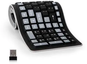 sungwoo Wireless Silicone Keyboard, 2.4GHz Wireless, Foldable Rollup Keyboard, Waterproof, Dustproof and Lightweight, Perfect for PC, Notebook, Laptop and Travel(Black)