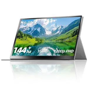 ZefcS Portable Gaming Monitor 16 Inch 144Hz 1920x1200 FHD+ USB-C Portable Monitor, HDR IPS Second Screen for Laptop MacBook Pro PC PS5 Xbox Switch