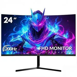 ZZA 24 Inch 200hz/180hz Curved Gaming Monitor, FHD 1080P Frameless Computer Screen, AMD FreeSync, Low Motion Blur, Eye Care for Home Office & PS5, DisplayPort & HDMI, VESA Mount - Black