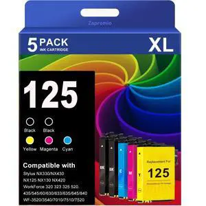 Zapromio 125 Ink Cartridge Remanufactured Replacement for Epson 125 T125 use for NX125 NX127 NX130 NX230 NX420 NX530 NX625 Workforce 320 323 325 Printer (2 Black, Cyan, Magenta, Yellow)