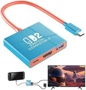 Auarte Switch 2 Dock for Nintendo Switch 2(2025) or 1/OLED/Steam Deck,Portable TV Docking Station,Travel Adapter,USB-C to HDMI Output Supports 4K/1080P