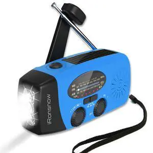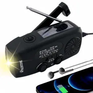 Weather Radio Hand Crank Self Powered Solar Portable Mini Emergency Survival Radios with 3 LED Super Bright Flashlight 2000mah Battery Operated Power Smart Phone Charger, SOS