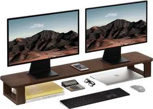 Ufine Dual Monitor Stand Riser 2 Heights Adjustable Wood Computer Monitor Stand Desktop Organizer, Large Monitor Stand for 2 Monitors, Laptop, TV, Printer