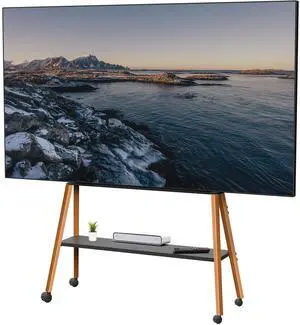 PUTORSEN Easel TV-Stand for 43-65-Inch Screens - Portable Swivel Tripod TV Stand with Wooden Tray, Height Adjustable TV Floor Stand, Max Load 77 lbs, Max VESA 400x400 mm, Black